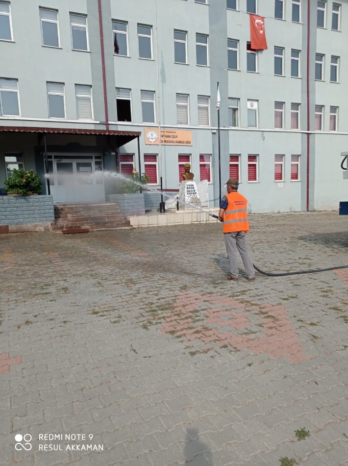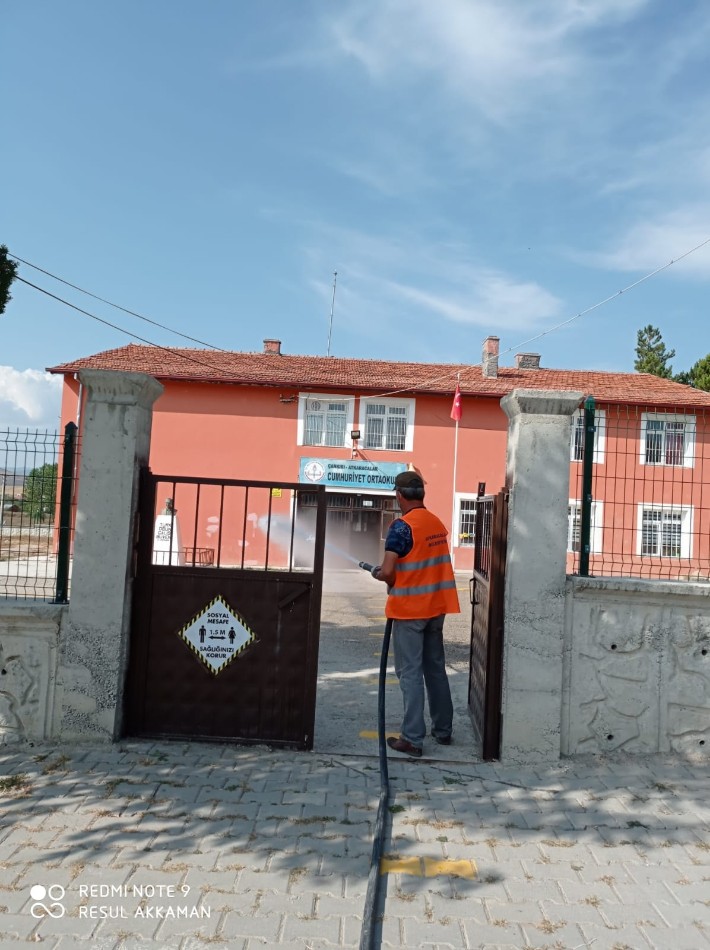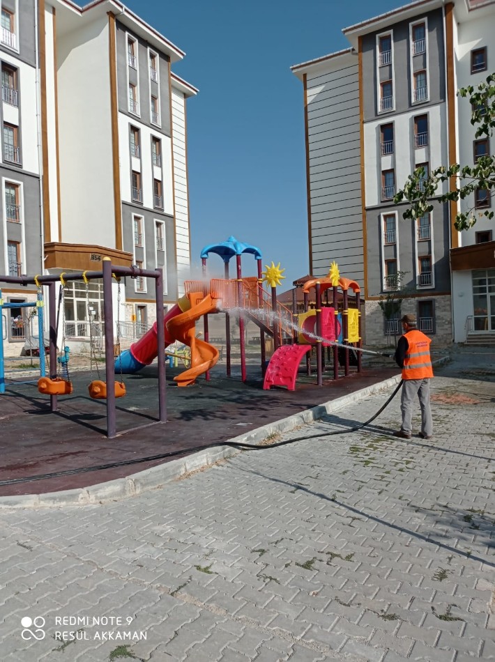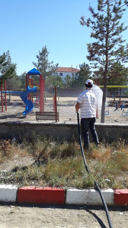 Belediye personelimiz tarafından Covit-19 ile mücadele kapsamında ilçemizdeki parklar,okullar,camiler,kahvehane önleri,market önleri,kamelyalar, resmi kurumlar gibi halkımızın ortak kullanım alanları dezenfekte edilmektedir.
